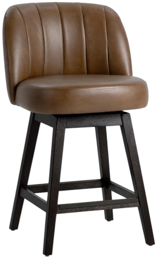 Bring style and comfort to your kitchen or bar area with this swivel counter stool. Crafted from solid parawood and upholstered in, durable top grain, it combines natural warmth with modern ease. The channeled seat offers all-day comfort, while the smooth swivel motion enhances functionality.Read More